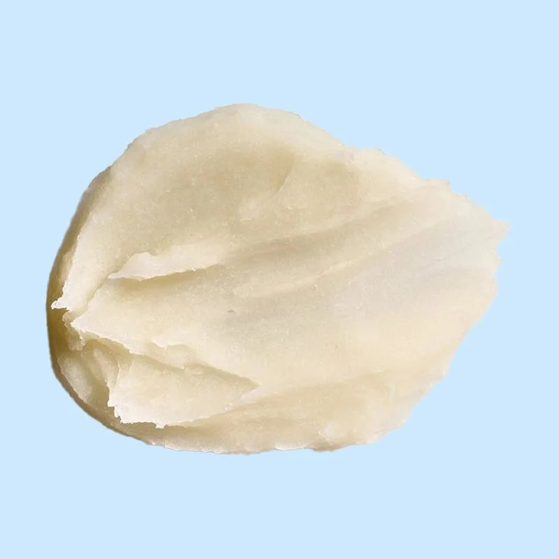 A whipped shea sugar polish buffs away dullness and rough texture, revealing softer, brighter skin beneath.